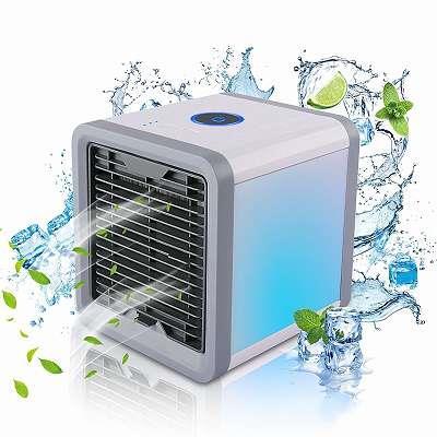 Creëert een koel persoonlijk microklimaat met behulp van natuurlijke verdampingstechnologie, het beste voor een warm en droog klimaat. 3-in-1: koelt, bevochtigt en reinigt stofdeeltjes uit de lucht voor een gezondere ademhaling. Koelt het gebied voor het apparaat (45 vierkante voet), ongeveer zo groot als een bureau, bank of bed. Gebruikt slechts 8 W (100 keer minder dan gewone AC) Veilig in gebruik: CE, ETL gecertificeerd; 1 jaar fabrieksgarantie Deze Air Cooler is een persoonlijke luchtkoeler waarmee je jouw eigen microklimaat kunt creëren. 3 in 1 apparaat: het koelt, bevochtigt en reinigt de stofdeeltjes uit de lucht waardoor het gezonder voor u wordt. Het installeren kost niet veel tijd of moeite - giet gewoon water in de tank, sluit hem aan en geniet. Deze slimme nieuwe oplossing voor de koelmarkt biedt een apparaat dat de lucht daadwerkelijk koelt, gebruikmakend van de grootte en het stroomverbruik van een kleine ventilator.