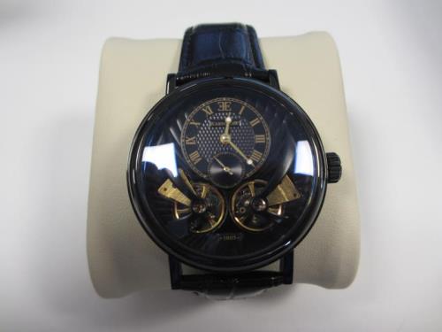edelstalen kast met zwarte IP coating, zwarte lederen band, zwarte wijzerplaat