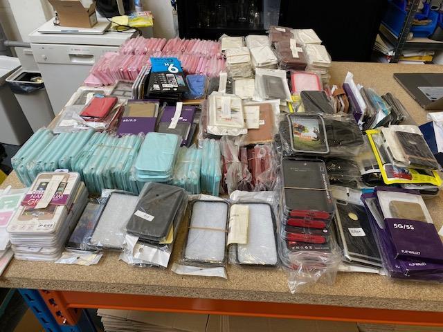 117 - 185 : 1 doos met ca. 225 smartphone hoesjes en screenprotectors