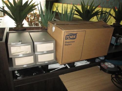 118 - 160 : 4 Tork napkin dispencers met voorraad napkins