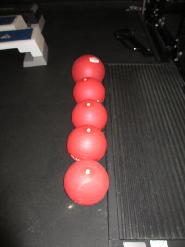 5 x 1 slamball, 2 x 5 kg., 1 x 6 kg., 1 x 9 kg. En 1 x 20 kg.