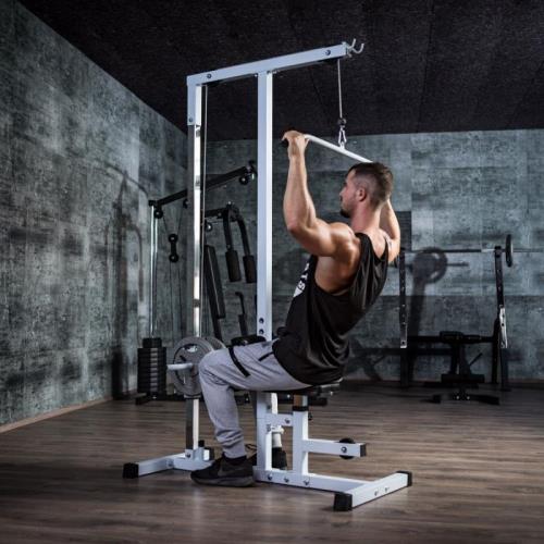 Het Lat Pulley Station is gemaakt van staal en belastbaar tot 200 kg. Hij is in hoogte te verstellen en wordt geleverd incl. kabel, korte en lange pulley stang. Zeer geschikt om de rug, biceps, triceps, corespieren, schouders en borstspieren te trainen.