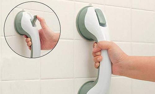 Biedt stevige ondersteuning om in en uit de douche te stappen Ook ideaal bij de WC, wastafel etc. Blijft stevig zitten middels zuignappen en kliksysteem Eenvoudig binnen enkele seconden te monteren en te verplaatsen