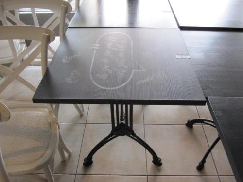 138 - 10 : 1 vierkante houten restauranttafel met metalen onderstel