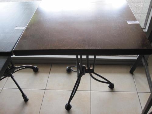 138 - 15 : 1 vierkante houten restauranttafel met metalen onderstel