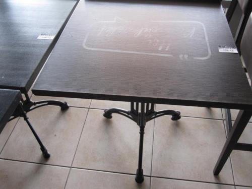 138 - 16 : 1 vierkante houten restauranttafel met metalen onderstel