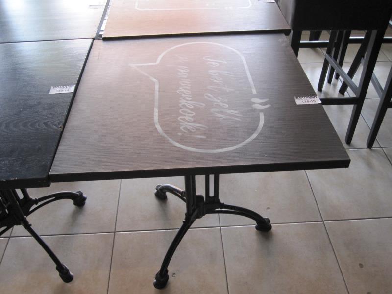 138 - 17 : 1 vierkante houten restauranttafel met metalen onderstel