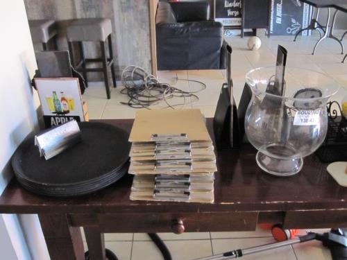 1 partij restaurant accesoires w.o menukaarten, menukaarthouders etc.