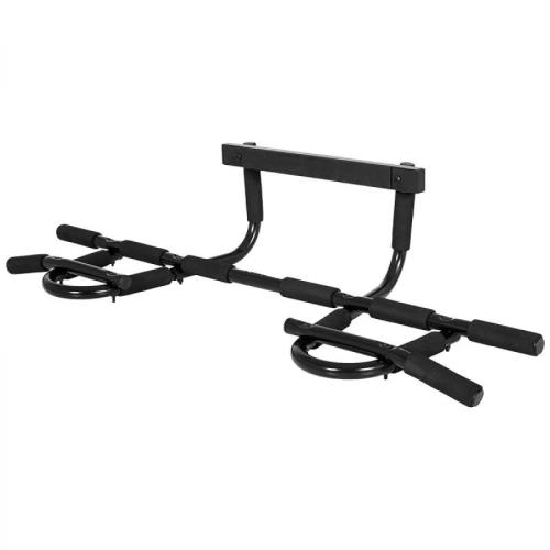 Deze multifunctionele optrekstang biedt 10 verschillende grijpopties en is schroefvrij (ophangen in kozijnen met openstaande rand). De maximale belasting is 150 kg. Hiermee kun je rugspieren, biceps en buikspieren trainen.