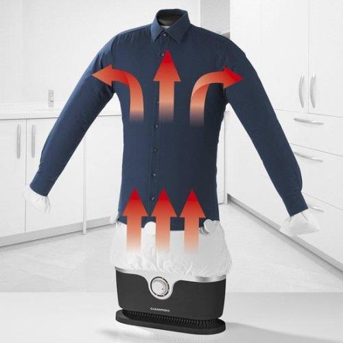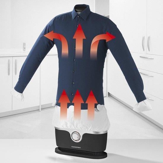 Zeg eens eerlijk, hou jij van strijken? Het neemt veel tijd in beslag en aan die berg overhemden lijkt vaak geen einde te komen. Als jij voortaan op een gemakkelijke manier, je gekreukelde kleding als nieuw wilt krijgen, is deze strijkmachine perfect voor jou. Deze automatische strijkmachine, die ook meteen droogt, zorgt voor kreukvrije overhemden, blouses en T-shirts in je kledingkast. Hij bespaart je heel veel tijd en het is nog leuk om te doen ook. Als je het gecentrifugeerde overhemd of T-shirt over de opblaasvorm van de Cleanmaxx trekt, kun je deze met bijgevoegde klemmen bevestigen. De timer zet je op de gewenste duur en de ballon blaast zich op, dat is alles.