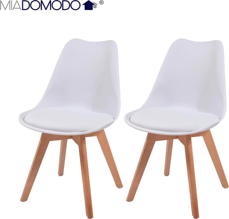 161 - 96 : Miadomodo Stoelen - Eettafel Stoelen - Bekleed met Zitkussen - Wit - Set van 3
