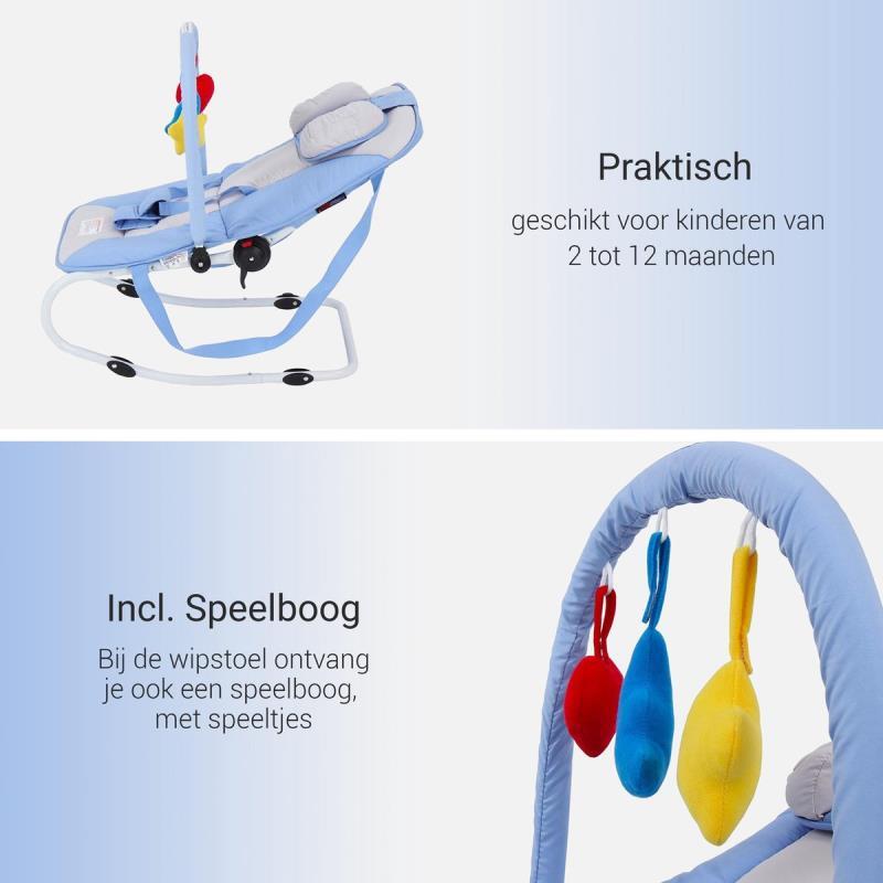 Als je kind nog niet zelfstandig kan zitten, maar wel eens iets anders wil dan alleen maar liggen, is de Wipstoel van Infantastic dé uitkomst. Je kind kan in deze wipstoel goed om zich heen kijken en zachtjes op en neer wippen.