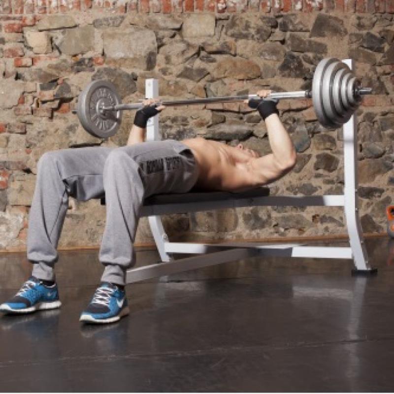 De halters van deze halterbank staan 122 cm uit elkaar, de bank is dus gemaakt voor bankdrukken met de lange halterstang (minimale binnenmaat 125 cm!). Op deze bank kun je echt zwaar gaan en je borstspieren en triceps vol aanpakken, hij is namelijk te belasten tot maar liefst 300 kg!