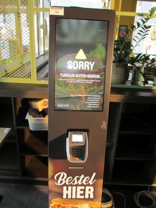 175 - 107 : 1 NTF e-kiosk bestelzuil met betaalautomaat, kiosk bonprinter, en chromedevice