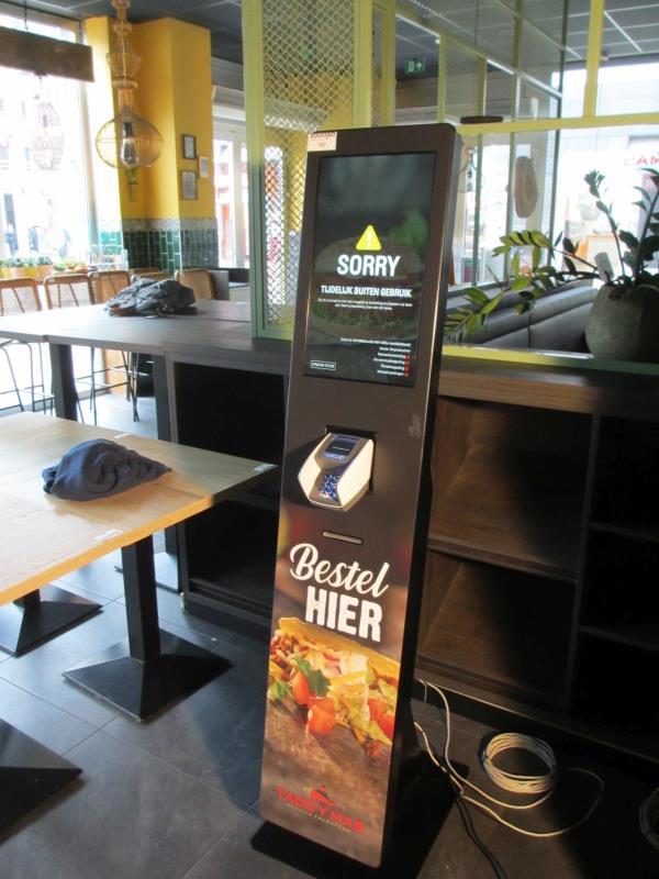 1 NTF e-kiosk bestelzuil met betaalautomaat, kiosk bonprinter, en chromedevice