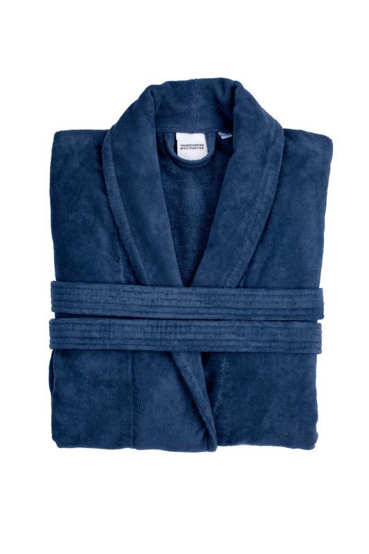 206 stuks badjassen, 340 gram, kleur Navy, in de maten S/M/L/XL/XXL, 54 stuks XXL, 80 stuks L/XL, 72 stuks S/M