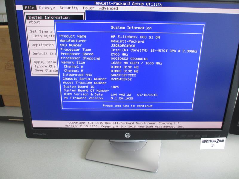 1 HP Elitedesk 800 G1 desktopcomputer, i5-4570T processor @2,9 GHz, 16 GB Ram, 256GB SSD, exclusief besturingssysteem