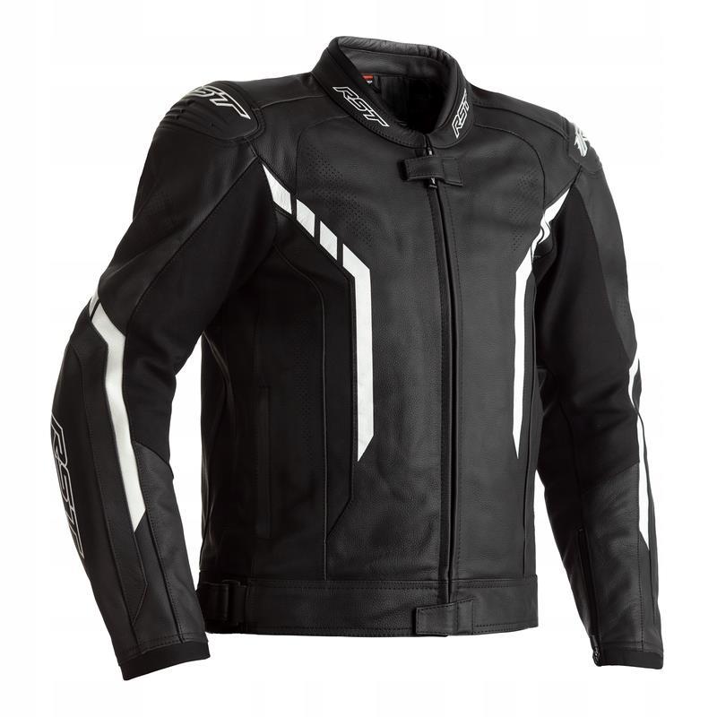 RST AXIS CE MENS LEATHER JACKET, Black Black White, 56