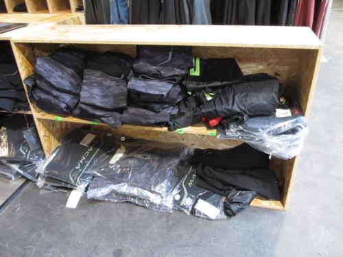 184 - 889 : de inhoud van de kast w.o. Macna broeken, regenkleding, etc.