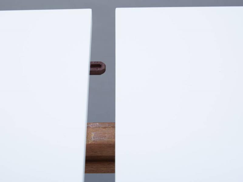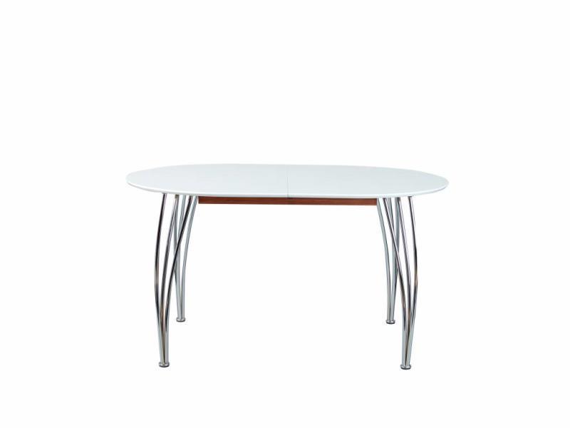 Met deze eetkamertafel heb je een tafel volgens de laatste trend en kun je gezellig samen eten met familie of vrienden. De mat witte eettafel straalt luxe uit dankzij de ovale vorm. Het tafelblad van de tafel is gemaakt van MDF hout en afgewerkt met een witte lak. Het blad steunt op vier verchroomde metalen poten. Het bovenblad kan verlengd worden van 140 cm naar 180 cm en zo kunt u met een grotere gezelschap genieten van een uitgebreid diner. De tafel is 90 cm breed. Winke verkoopprijs € 329