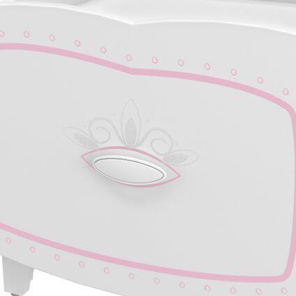 Het nachtkastje Diademe is geschikt voor alle kleine prinsessen! Gemarkeerd met roze en glitterdetails, geeft het een zachte en meisjesachtige toets aan de kinderkamer. Praktisch, het biedt twee slimme opbergmogelijkheden met zijn lade en het opbergblad, waardoor pluisjes en boeken niet vallen! Vind de complete "Diadème" collectie voor een echte prinsessenkamer.