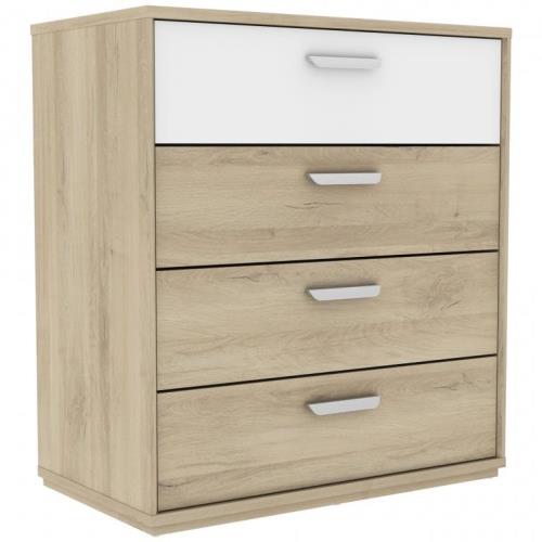 De ladekasten uit de Aelig serie hebben een stevig en stoer karakter en zijn uitgevoerd in geborsteld grenen met wit. Deze ladekast heeft 4 lades. De lades zijn voorzien van grepen met ladegeleiders. Het meubel is gemaakt van spaanplaat.