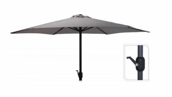 De ideale parasol om onbezorgd te genieten van de zon tijdens warme lente- en zomerdagen. Het polyester doek is voorzien van een coating en is zonnewerend. De parasol is voorzien van een eenvoudig draaimechanisme. Productspecificaties - Kleur: licht grijs - Diameter parasol: 300 cm - Hoogte: 300 cm - Materiaal doek: polyester - Materiaal paal: aluminium - Mechanisme: draaien