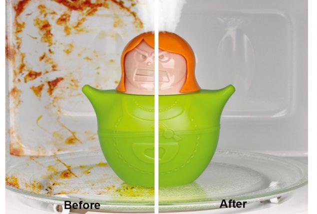 Moet je ook altijd zo hard en lang schrobben om het aangekoekte vuil in je microgolfoven weg te krijgen? Laat je dan een handje helpen door Schone Susi! Het is van haar gezicht af te lezen dat ze af en toe eens stoom moet afblazen... En dat doet ze in jouw microgolfoven! Dankzij deze microgolfovenreiniger hoef je enkel nog eens te wrijven met een doek om al het vuil en vet weg te krijgen.