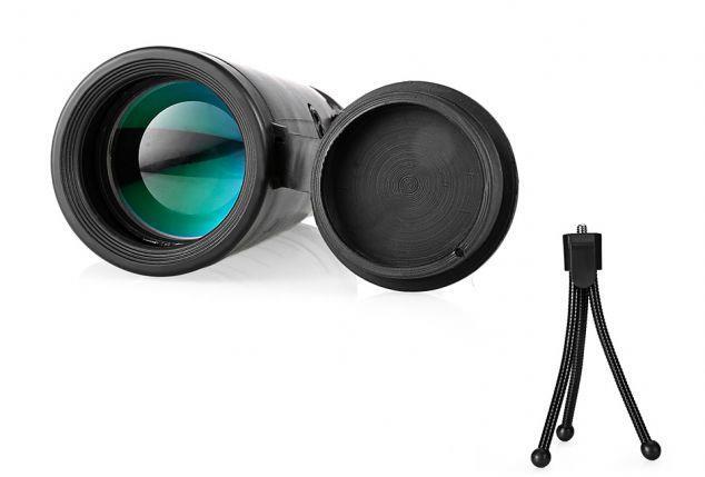 Eindelijk weekend of een vrije dag? Dan is de natuur intrekken altijd een goed idee! Snuif de verse lucht op en geniet van alle fauna en flora. Met deze monoculaire verrekijker breng je de hele wereld alvast iets dichterbij. Een zeldzame vogel gespot of een panoramisch zicht nóg meer appreciëren? De monokijker vergroot tot maar liefst 40 keer. Ook tijdens een strandwandeling hoef je niet bang te zijn om je verrekijker mee te nemen. De stevige rubberlaag beschermt je toestel tegen spatwater. Zo kan jij probleemloos de beweging aan boord van die eenzame vissersloep observeren of als een echte scheepsmaat "Land in zicht!" roepen. Bovendien krijg je er nog enkele handige accessoires gratis en voor niets bij, zoals een beschermhoesje, statief en lensdop voor brildragers. Dankzij deze lensdop kunnen brildragers ook gemakkelijk door de verrekijker kijken! Een niet-te-missen koopje voor tijdens je volgende natuuruitstap of reis! INHOUD Monoculaire verrekijker Beschermtasje Koord voor rond de pols Bevestigingsclip Statief Lensdop voor brildragers Handleiding TECHNISCHE SPECIFICATIES Materiaal: staal en rubber Kleur: zwart Zoom tot 40 x Prijs per stuk € 2,50