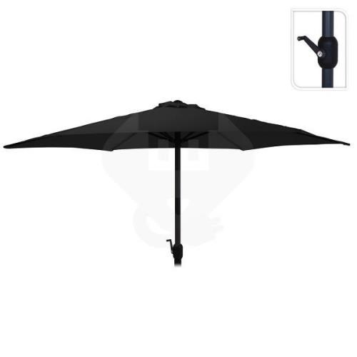 Met deze parasol kun jij een heerlijk schaduwplekje in de tuin creëren. Deze zwarte parasol geeft jouw tuin niet alleen een luxe uitstraling, maar beschermt je ook tegen de felle zonnestralen. Dit exemplaar heeft een 160 grams polyester doek en een sterk aluminium frame met een dikte van 38 millimeter. De stok heeft een poedercoating en is voorzien van een handige draaihendel, waardoor je de parasol eenvoudig op de juiste hoogte kunt instellen. Bovendien heeft deze parasol een diameter van 270 centimeter en een maximale hoogte van wel 245 centimeter.
