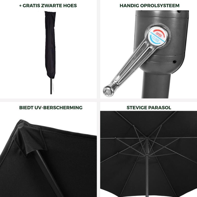 198 - 248 : Luxe Parasol – Diameter 250 cm – Waterdicht – Uv beschermend – Zwart