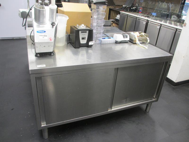 1 rsv werktafel met ondergebouwde kasten, afm ca. 150 x 60 cm.