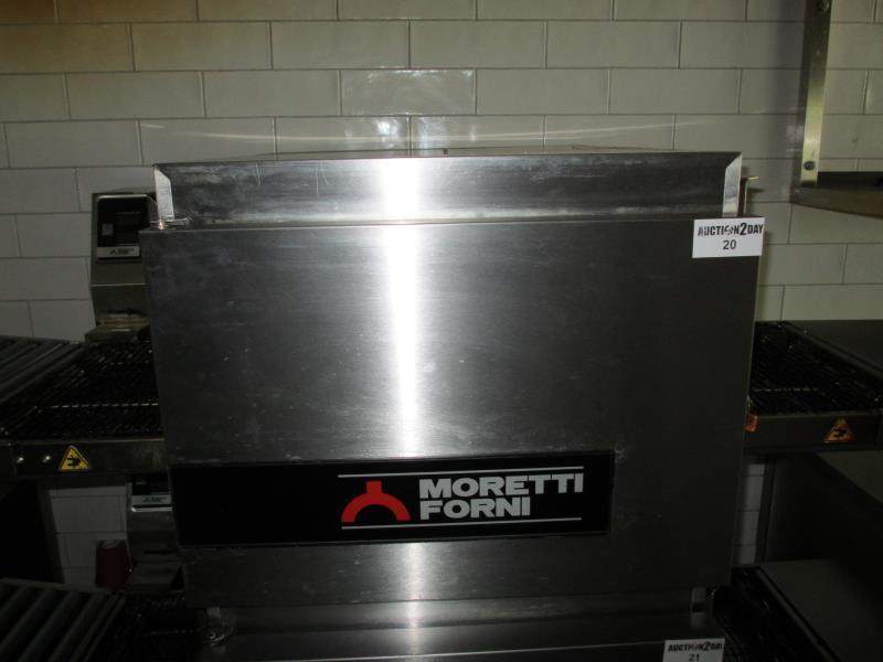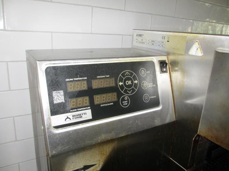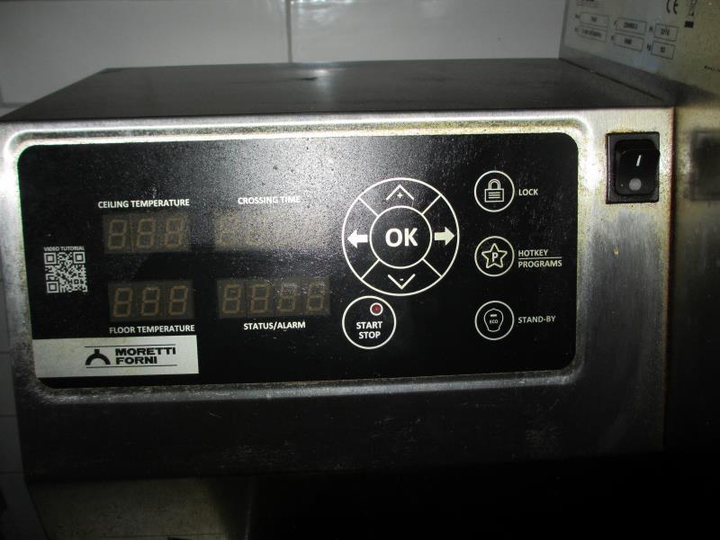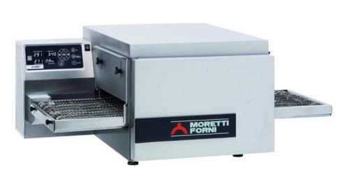 Moretti Forni bandoven, model T64E, 1 ovenruimte, digitale bediening, elektrische aansluiting, transportband van rvs, van links naar rechts