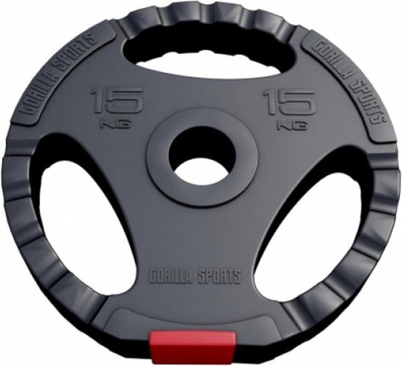 206 - 142 : Gorilla Sports Gewichtsschijf - Olympisch - Halterschijf - 15 kg - Kunststof Gripper - 50 mm