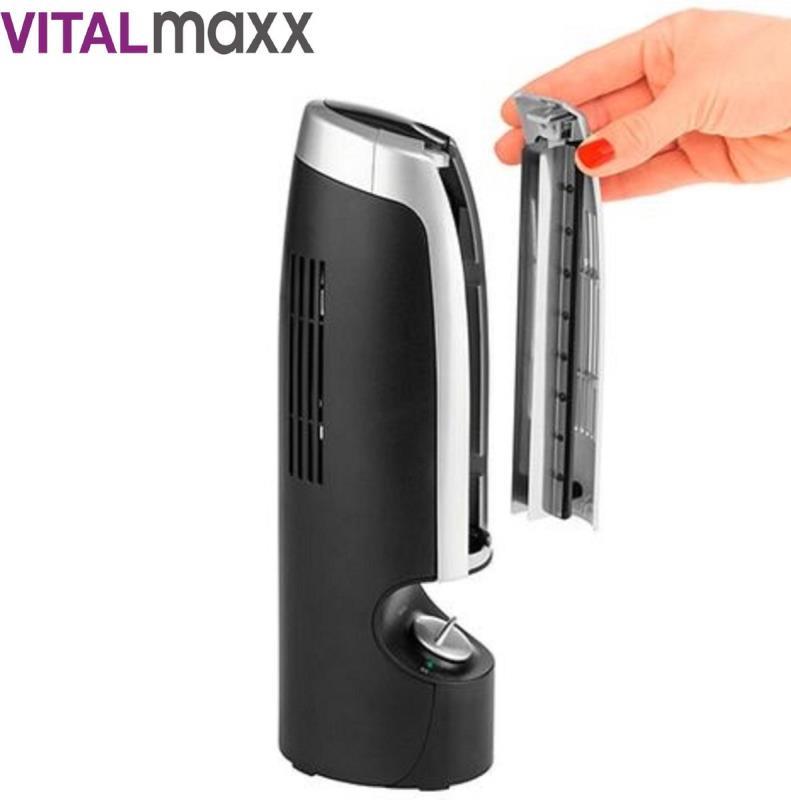 De VITALmaxx luchtreiniger zorgt met één druk op de knop voor schonere kamerlucht. Door de lucht te verrijken met negatieve ionen (die anders alleen te vinden zijn in bossen, bergen of bij watervallen), neutraliseert hij nare luchtjes en ververst hij de lucht.