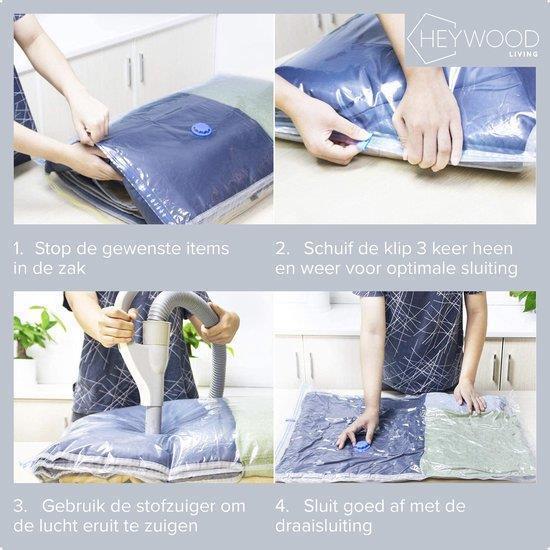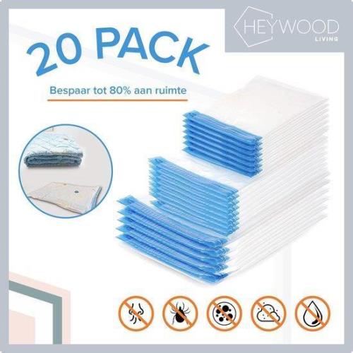 Heywood Living Vacuüm Opbergzakken – Ruimtebesparend – Herbruikbaar – Creëer Ruimte - Dekbed/Kussen/Kleding – Stofzuiger Vacuümzakken – Vakantie - Reizen – Opbergen – S/M/L - Set van 20