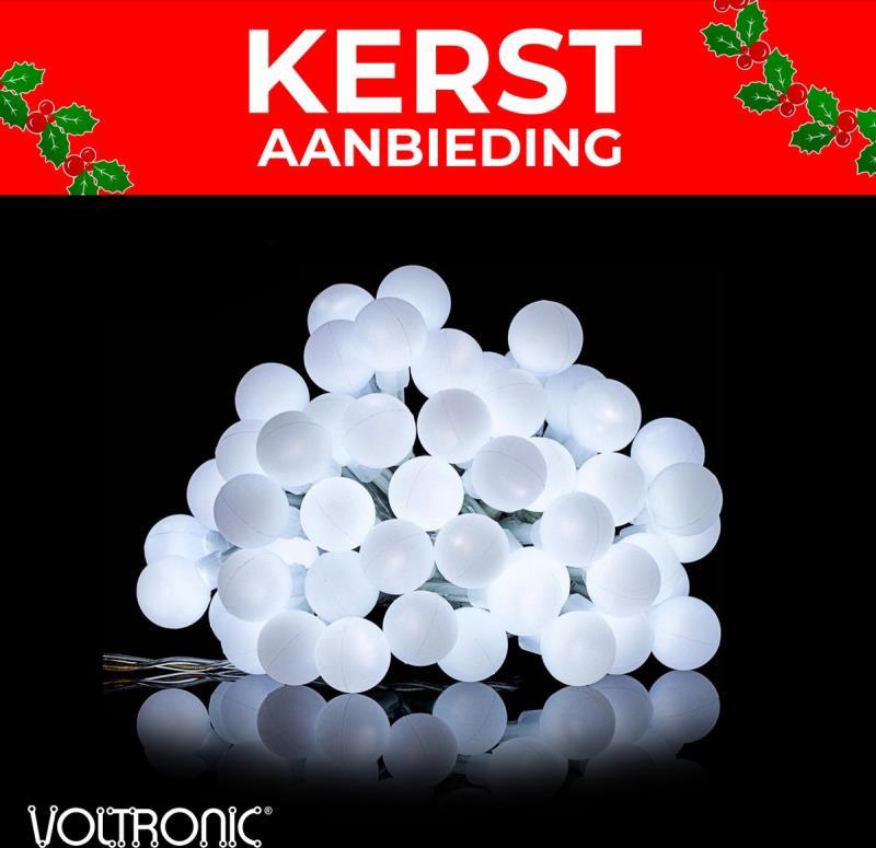 Breng sfeer in je huis of tuin met de kerstverlichting (Sneeuwbal Verlichting) van Voltronic. Voorzien van 200 bollen creëer je de meest feestelijke vormen tijdens de feestdagen of gedurende het jaar. Voor het raam, aan de muur, in een boom, tijdens kerst, een feest óf buiten in de tuin. De bollen aan deze string hebben een afmeting van 1cm bij 1cm.
