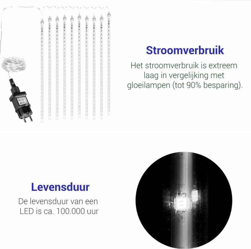 Breng sfeer in je huis of tuin met de meteorenregen van Voltronic. De LED sticks lichten asynchroon op en creëren zo een prachtig druppel effect. Voor het raam, aan de muur, in een boom, tijdens een feest óf buiten in de tuin, deze meteorenregen is geschikt voor zowel binnen- als buitengebruik!