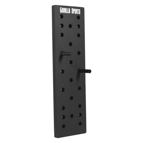 Wellicht ben je al bekend met het Pegboard fenomeen. Wij van Gorilla Sports zijn blij je deze voor het eerst te mogen aanbieden. Hiermee train je je armen, rug, borst- en buikspieren. Je kunt ervoor kiezen om het board horizontaal of verticaal op te hangen. De maximale belastbaarheid is 500 kg. Als je nog nooit eerder een Pegboard hebt gezien, kun je je afvragen waar het precies voor bedoeld wordt. Wellicht om een spelletje mee te spelen? Dit is niet het juiste antwoord. Je kunt hiermee onder andere pull ups doen. Het leuke aan de stokjes is dat deze los zitten en je er dus mee kunt klimmen. Leuk, maar ook ontzettend zwaar. Ben je nog niet aan zo’n heftige training toe? Dan kun je de stokjes ergens is het midden plaatsen en er pull ups, negatives, knee- en leg raises mee doen. Ben jij een echte (wand)klimmer en kun jij wel wat extra kracht gebruiken? Dan is een Pegboard ideaal voor jou. Je bouwt spiermassa op die goed van pas komen tijdens het klimmen. Probeer ook eens met één hand wat oefeningen uit te voeren. Dit is zwaar, maar effectief. Iets wat jouw trainingsprestaties alleen maar ten goede komt. Goed om te weten; een Pegboard kun je het beste boven een deurpost bevestigen.
