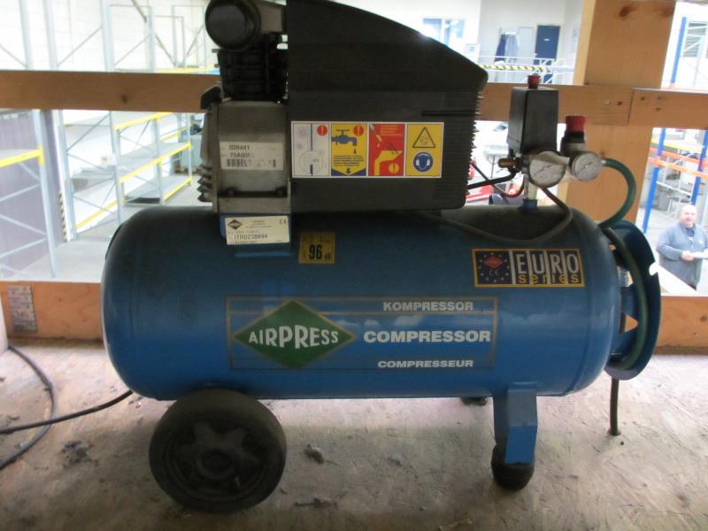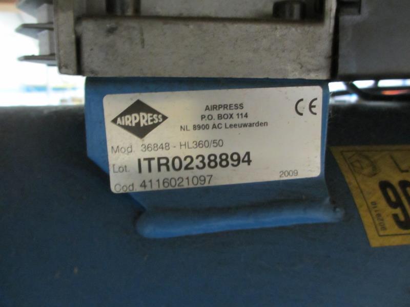1 Airpress compressor op luchtvat, modelHL 360-50 inclusief leidingwerk en haspel