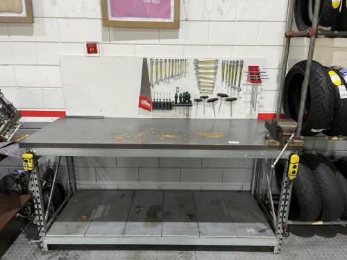 221 - 85 : 1 werkbank met bankschroef en gereedschapswandbord incl. gereedschap