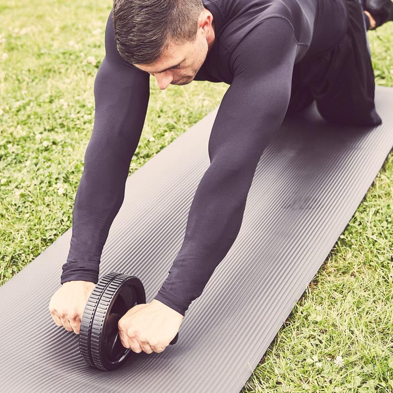 Als je nog nooit met de Ab Wheel hebt getraind, is het raadzaam om de oefening de eerste paar keer op je knieën uit te voeren. Je houdt de Ab Wheel met beide handen vast en rolt langzaam naar voren en daarna weer terug. Het is de bedoeling dat je je zoveel mogelijk strekt bij het uitvoeren van de beweging. Je zult direct de enorme spanning op je buikspieren en onderrugspieren voelen! Mensen die nog niet goed getraind zijn, kunnen het beste gecontroleerd in de richting van een muurtje rollen met de Ab Wheel, hiermee voorkom je dat je verder naar voren rolt dan je zou willen! De Ab Wheel vraagt namelijk echt het uiterste van je spieren, in tegenstelling tot de buikspierapparaten die je kunt gebruiken en tegelijkertijd bij wijze van spreken koffie kunt drinken. De Ab Wheel is the real deal!