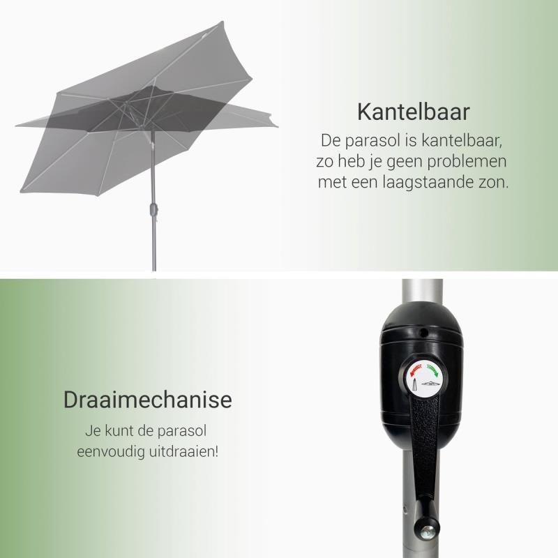 Het frame is gemaakt van aluminium. Hierdoor is de parasol uitermate licht en is daardoor makkelijk te verplaatsen of zelfs mee te nemen.