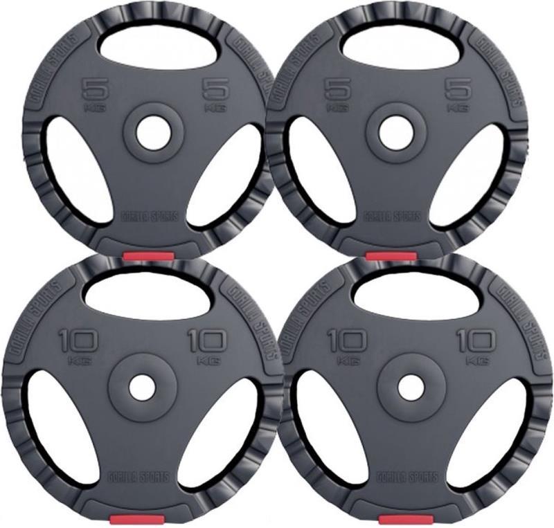 235 - 766 : Gorilla Sports Halterschijven 2x5 & 2x10 kg - Gripper Kunststof - 30 mm