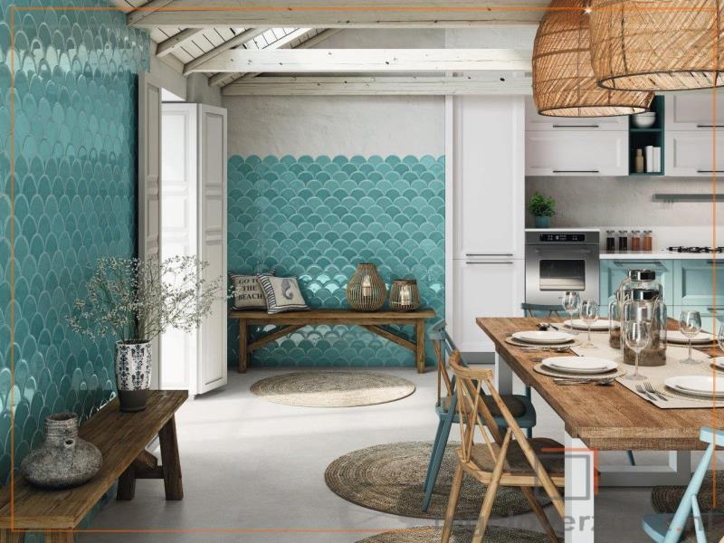 231 - 86 : Wandtegel Memories Smile Acqua 12x12,5cm 8mm Glanzend