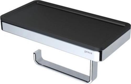 Geesa Frame closetrolhouder met zwart planchet, chroom - 918824-02-06