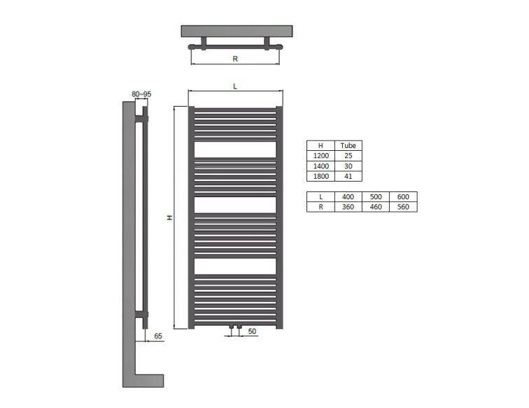 243 - 205 : Sub 034 handdoekradiator recht middenaansluiting 400x1200 mm