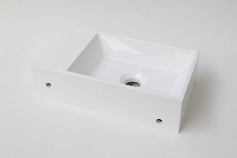 INK Contra Fontein - 40x22x10cm - wasbak links - 0 kraangaten - polystone wit glans