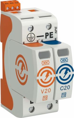 - Surge arrester, 2-pole Type 2 (Cl. C) type V20-1+NPE+FS-280