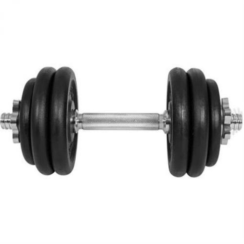 Deze 15 kg halter van Gietijzer is ideaal om spierkracht te ontwikkelen. Je kunt de halter aanpassen aan je eigen niveau, de halter wordt namelijk geleverd met 4 schijven van 2,5 kg en 2 schijven van 1,25 kg. De schijven worden stevig vastgezet met de schroefringen, die het totaalgewicht van 15 kg completeren.